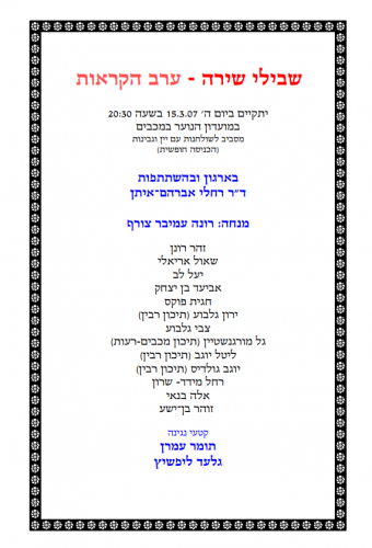 שבילי שירה – ערב הקראות 15.3.07
