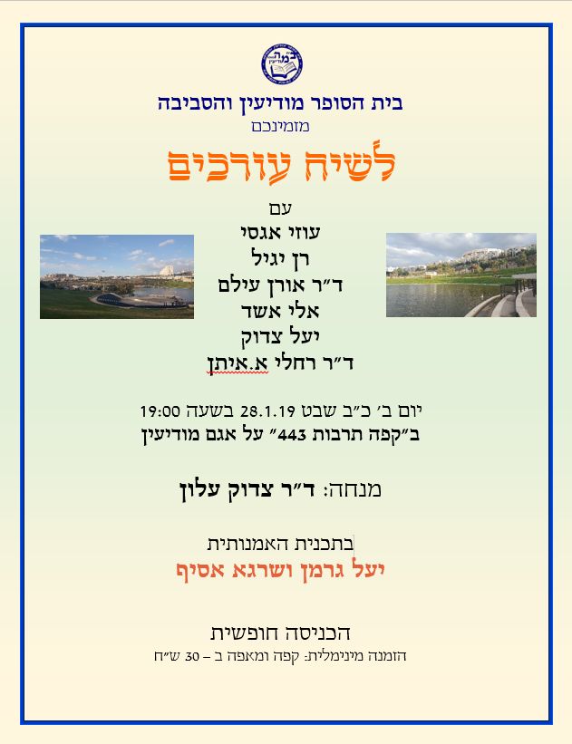 ראשי » ארועים » "שיח עורכים" ב"קפה תרבות 443" מודיעין - 28.1.19 » הזמנה לשיח עורכים 28.1.19 הזמנה לשיח עורכים 28.1.19